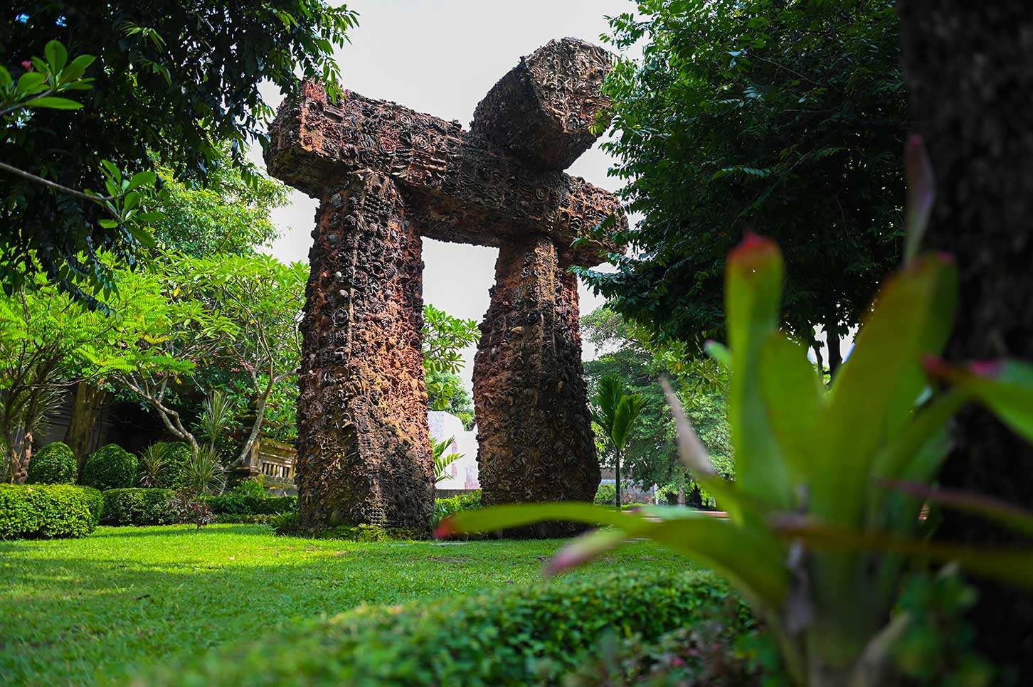 The installation of the ISI BALI logo on the Candika Pangurip ISI BALI monument, located in the western part of the ISI BALI campus.
