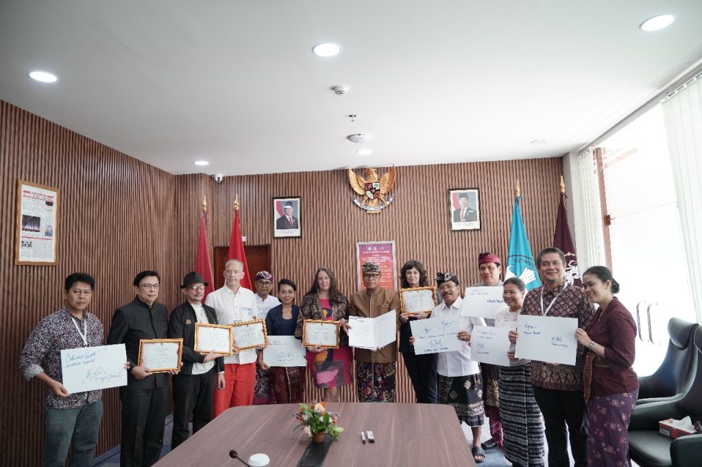 Foto : Pimpinan miwah dosen saking perguruan tinggi seni miwah desain ring Wilayah Asia Pasifik ring B-GAAD Leaders’ Summit, Anggara (28/10) ring Ruang Sabha Citta Mahottama, Gedung Design Hub, ISI BALI.