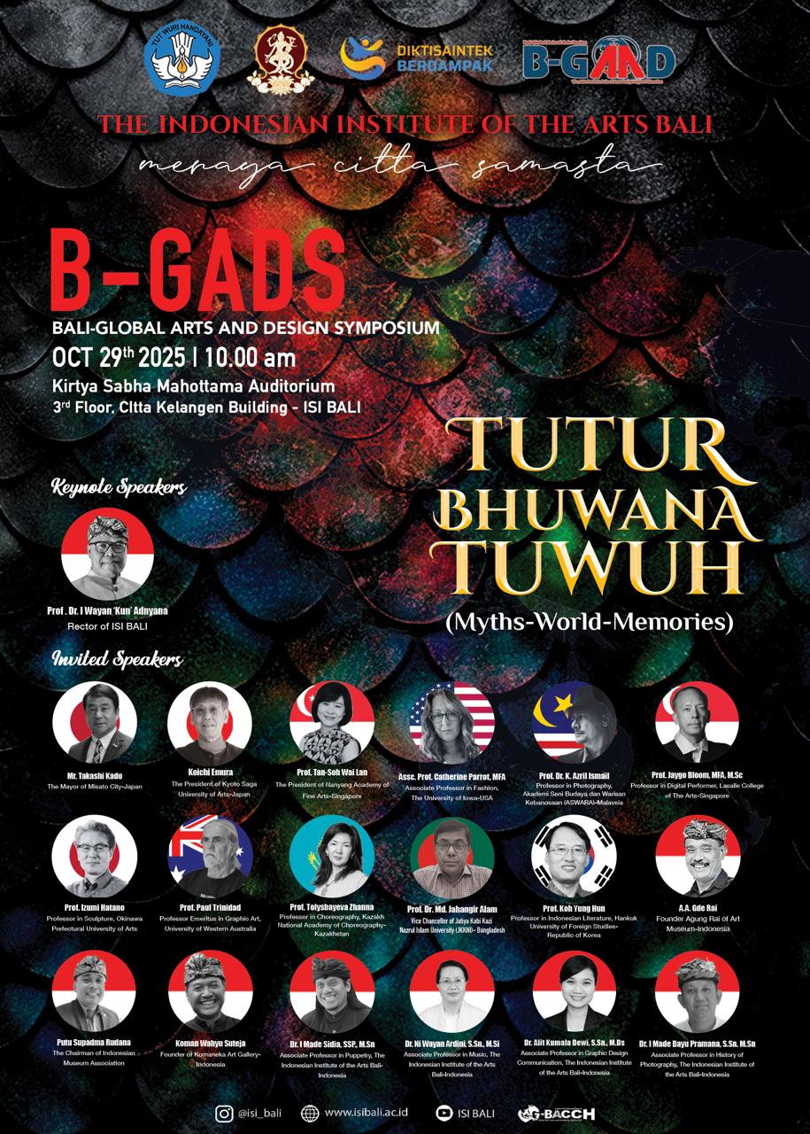 The 2024 B-GADS featured three keynote speakers: the Consul General of Japan, Katsutoshi Miyakawa; the Australian Consul, Amelia Ekkel; and the Rector of ISI Bali, Prof. Dr. I Wayan ‘Kun’ Adnyana. In addition, 28 invited speakers participated, including: Prof. Izumi Hatano (Okinawa Prefectural University of Arts); Prof. Tolysbayeva Zh. (Kazakh National Academy of Choreography); Prof. K. Azril Ismail (ASWARA, Malaysia); Georgette Yu (Nanyang Academy of Fine Arts); Dr. Jean Couteau (France); and Ass. Prof. Paul Trinidad (University of Western Australia).