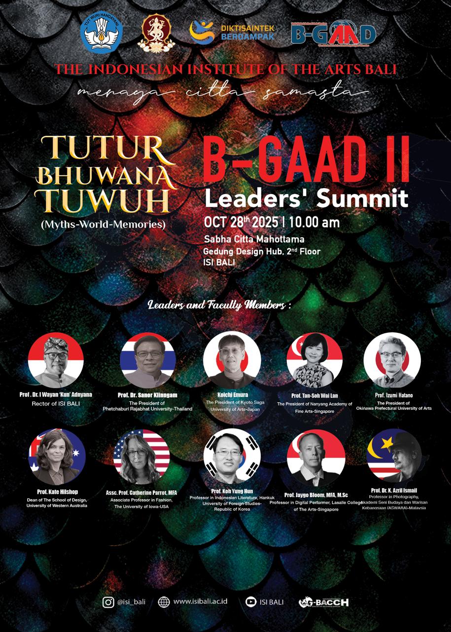 ISI Bali initiated the establishment of the Bali-Global Axis of Arts and Design (B-GAAD) as a platform for dialogue, strategic partnerships, and collaboration among higher education institutions managing art and design programs across the Asia-Pacific region. B-GAAD holds the vision of fostering excellence in the sustainable governance of higher education in art and design, with a commitment to social welfare, upholding the values of local wisdom, and mainstreaming natural environmental conservation.