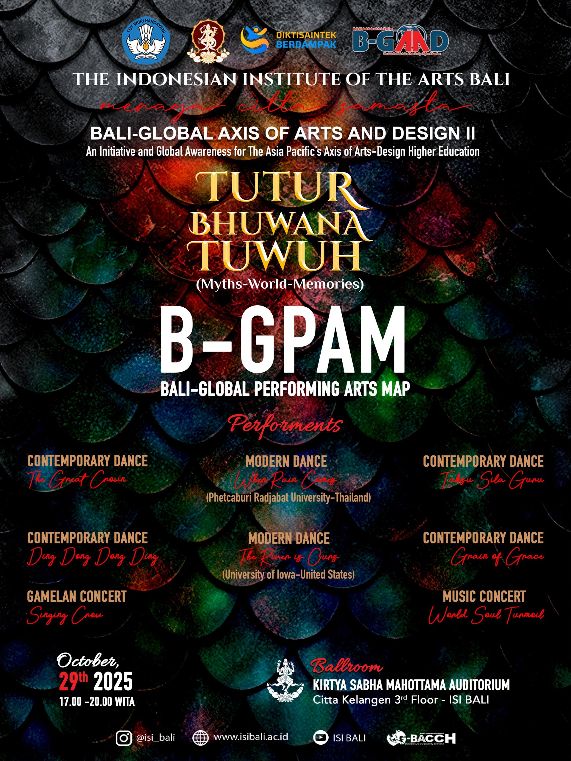The 2024 Bali-Global Performing Arts Map (B-GPAM) adopted the theme “Body, Nature, and Balance,” exploring the relationship between the human body and the universe. This inaugural B-GPAM featured the colossal performance Candet Ding Padmeswari Kalpa as the highlight of the B-GAAD I 2024 opening ceremony.