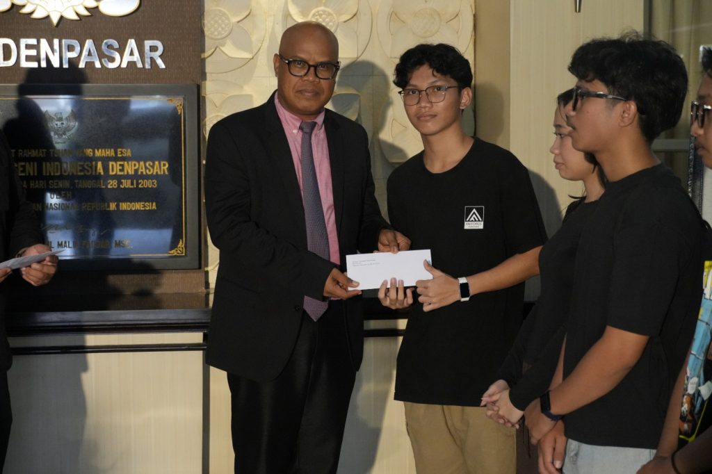 Rektor ISI BALI Prof. Dr. Wayan ‘Kun’ Adnyana menyerahkan langsung bantuan tunai kepada 36 mahasiswa ISI BALI dari daerah terdampak, pada Selasa (9/12) di kampus setempat. “Sumbangan ini sebagai bentuk solidaritas dan ungkapan empati dosen dan tenaga kependidikan (tendik) ISI BALI terhadap sahabat sebangsa yang terdampak bencana banjir Sumatera. Harapannya situasi segera pulih, dan masyarakat dapat kembali bangkit untuk berkarya dengan bahagia. Pada kesempatan ini, titiang menghaturkan terima kasih kepada seluruh dosen dan tendik  ISI BALI yang telah dengan sukarela menyumbang”. Penyerahan dilakukan bersama Wakil Rektor Bidang Perencanaan, Keuangan, dan Umum, Dr. Made Jodog; Wakil Rektor Bidang Kemahasiswaan dan Kerja Sama, Prof. Komang Sudirga; Ketua Satuan Pengawas Internal, Dr. Made Bayu Pramana; serta jajaran koordinator program studi.