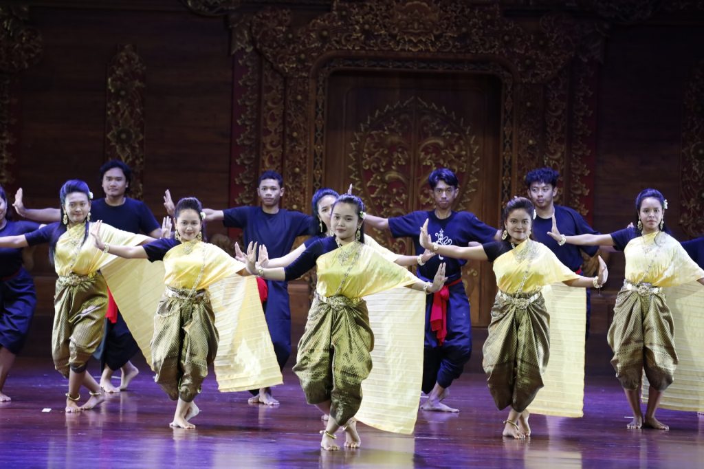 Photo: Performance of Serng Kratip Dance by students of Angthong College of Dramatic Arts and Roi Et College of Dramatic Arts, Thailand, together with students of ISI BALI, Monday (23/2) at Natya Mandala Hall, ISI BALI.