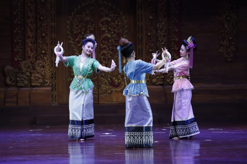 The performance concluded with an Isan folk dance performed in pairs by male and female dancers. The dance portrays the joyful and communal life of rural society, expressed through energetic and expressive movements.
