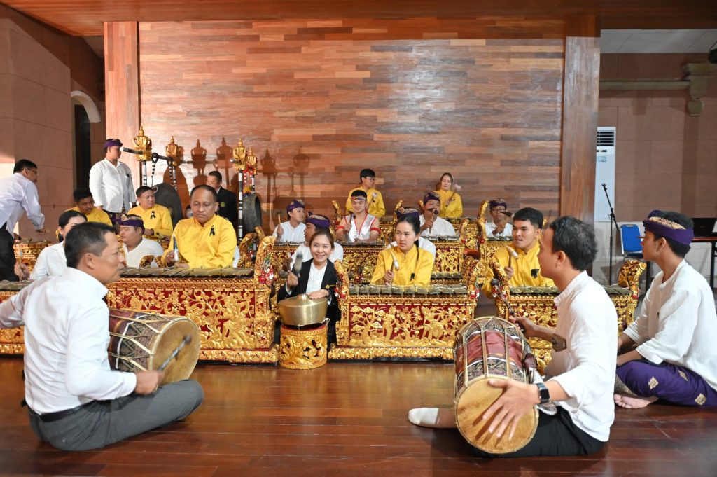 Photo: Karawitan performance by lecturers from Angthong College of Dramatic Arts and Roi Et College of Dramatic Arts, Thailand, together with lecturers and students of ISI BALI, Monday (23/2) at Natya Mandala Hall, ISI BALI.