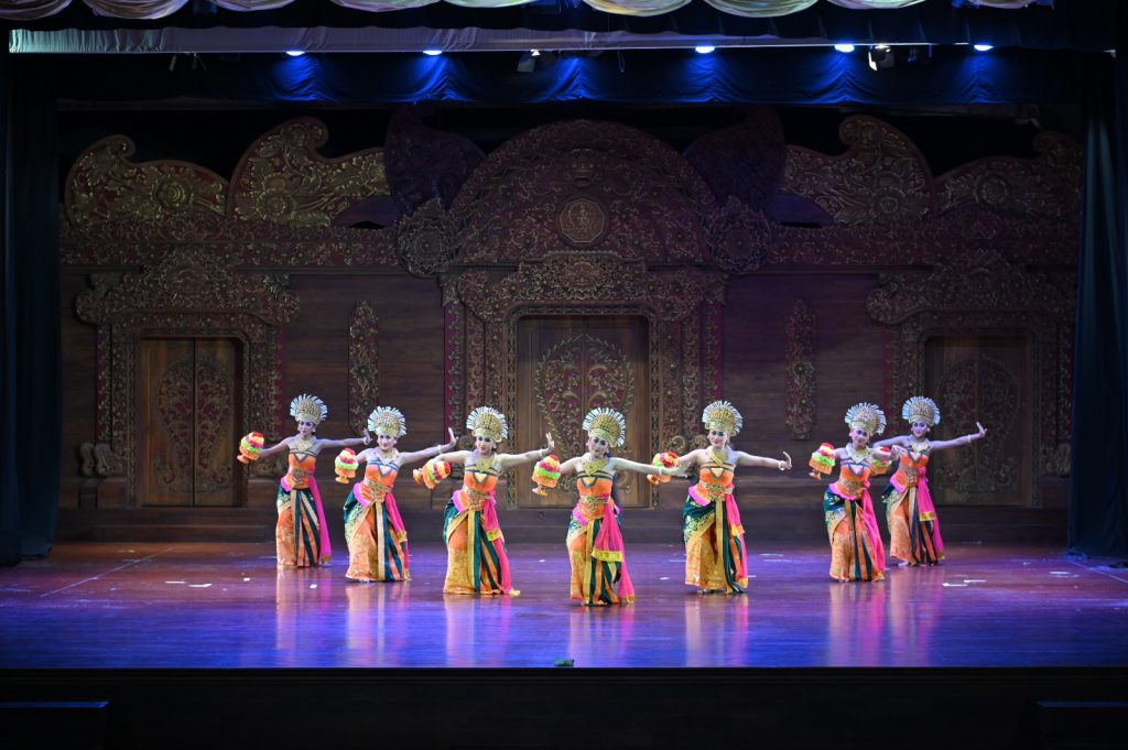 The second dance was Serng Kratip, a folk dance from the Isan region distinguished by dynamic movements and the use of pleated cloth that forms a wing-like silhouette as the dancers move. This dance was performed collaboratively by Thai students together with ISI BALI students who had previously participated in the Thai traditional dance workshop.