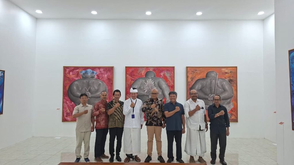 Foto: Rektor ISI BALI dan Kepala Badan Pengelola Fasilitas Kawasan Suci Pura Agung (FKSPA) Besakih meninjau pameran Parama Paraga di N-CAS ISI BALI, Rabu (22/4).