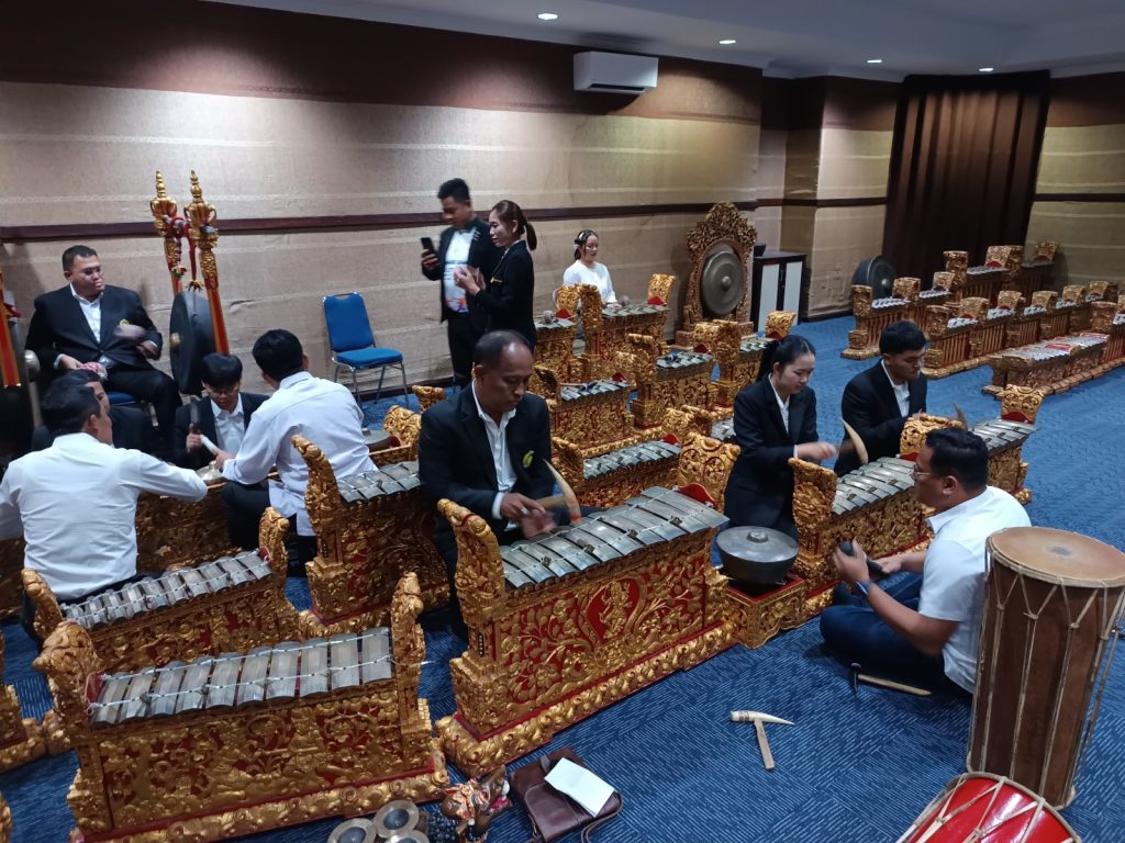 Foto: Parikrama workshop karawitan sané kasarengin olih para dosen saking Angthong College of Dramatic Arts lan Roi Et College of Dramatic Arts, Thailand, kalaksanayang ring rahina Soma (23/2) magenah ring Studio Karawitan ISI Bali.