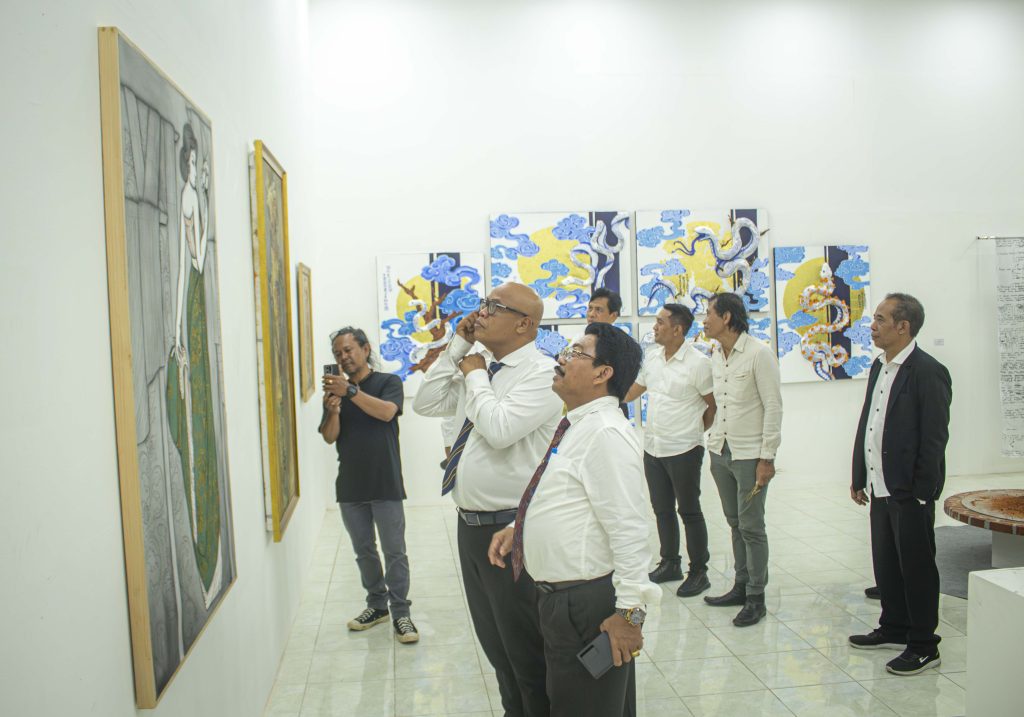 Foto: Rektor beserta jajaran pimpinan ISI BALI meninjau pameran “Tuai Tabur”, Senin (26/1) di N-CAS ISI BALI.