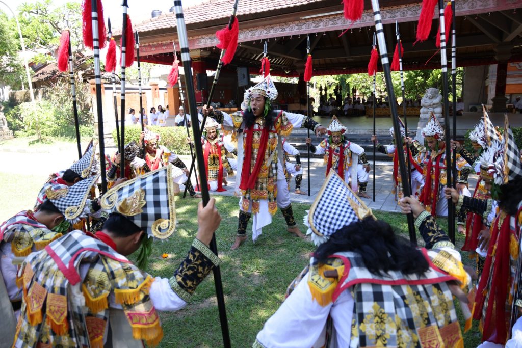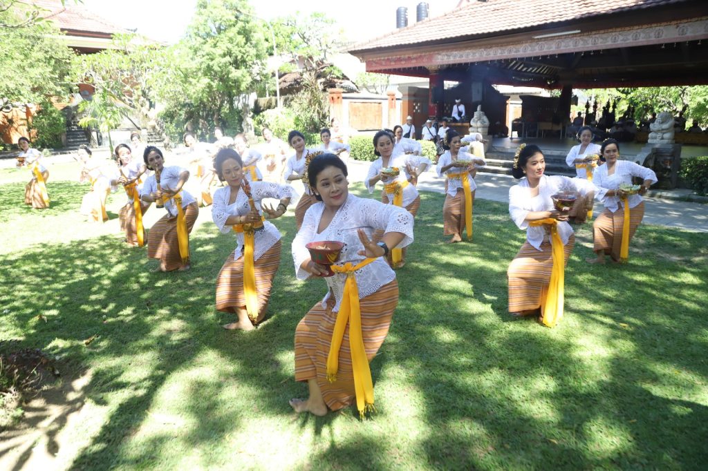 Tiosan punika, Dharma Wanita Persatuan (DWP) ISI BALI taler nyarengin ngaturang Tari Rejang Nata Hita. Pangunggah ayahan punika nukuang malih kening (kekhidmatan) upacara sapisanan nyinahang semangat pasikian saking makasami unsur kampus sajeroning nyokong pamargin upacara puniki. (ISIBALI/Humas)