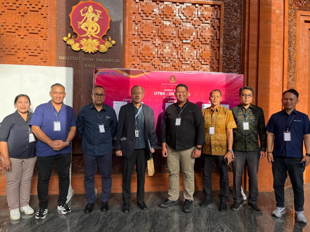 The Central SNPMB Monev Team was represented by R. Urip Purwono, Ph.D., Psychologist. Upon arrival, the team was welcomed by the Rector of ISI Bali, Prof. Dr. Wayan “Kun” Adnyana; the Vice Rector for Academic Affairs and Information Systems, Prof. Dr. AA Gde Bagus Udayana; the Head of the Internal Supervisory Unit (SPI), Dr. Made Bayu Pramana; the Head of the ICT Unit (UPA TIK), Agus Ngurah Arya Putraka, M.Sn; the Head of Academic Affairs, Ketut Adi Sugita, M.M.; along with members of the UTBK-SNBT organizing committee at ISI Bali.